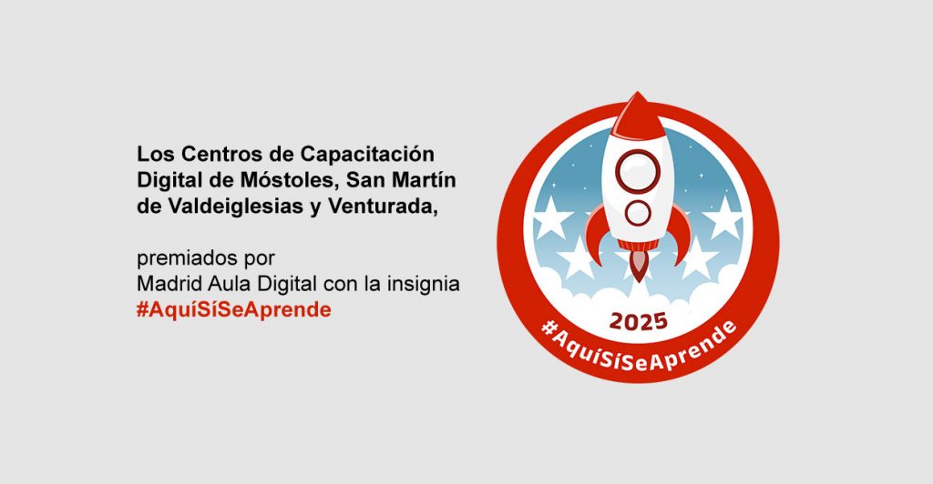 Los Centros de Capacitación Digital de Móstoles, San Martín de Valdeiglesias y Venturada reciben la insignia #AquíSíSeAprende, un reconocimiento a su compromiso constante por acercar la tecnología a la ciudadanía y fomentar la inclusión digital.